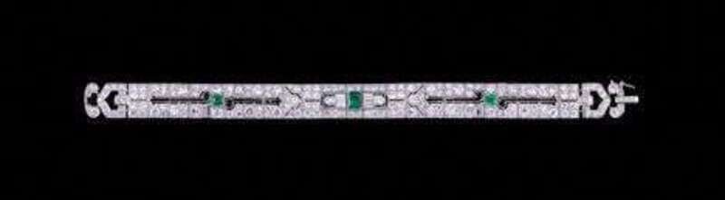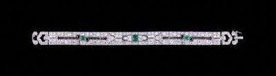 Platinum, diamond and emerald Art Deco bracelet circa 1925