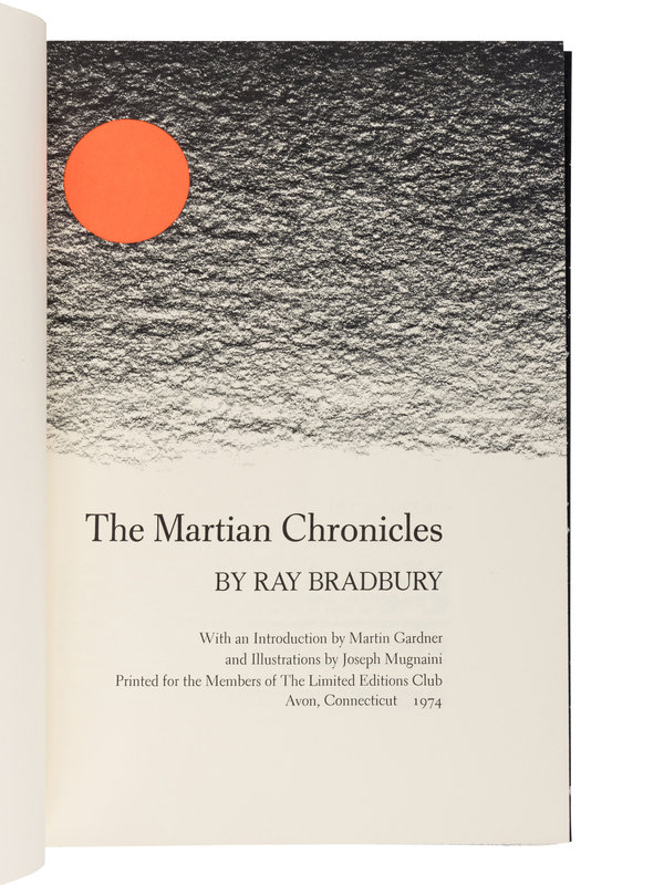 [LIMITED EDITIONS CLUB]. BRADBURY, Ray (1920–2012). The Martian Chronicles. Joe MUGNAINI (1912-1992), illustrator. Avon, CT: The Limited Editions Club, 1974.
