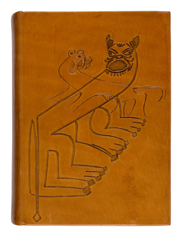 8vo. BOUND BY JAN SOBOTA: Contemporary cuir-ciselé design of mythical horned beast on tan calf, lower cover with cuir-ciselé design depicting an animal beneath a tree, title cut in to spine; leather chemise; leather slipcase (light rubbing to extremities).