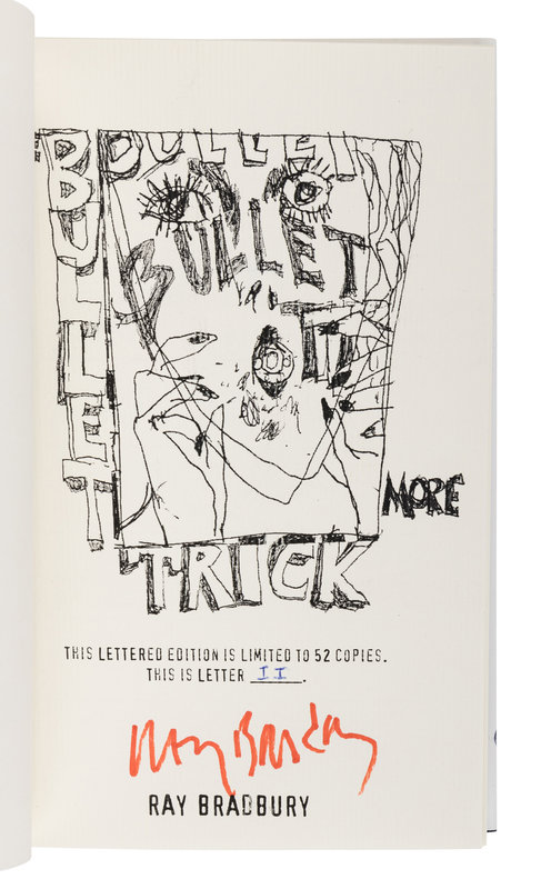 FIRST EDITION, LIMITED ISSUE, lettered "II" of 52 copies of the "Lettered edition," SIGNED BY BRADBURY. Comprising material not previously published, Bullet Trick includes 5 teleplays by Bradbury, which appeared on TV from 1955 through 1963, as well as 2 short stories.