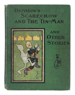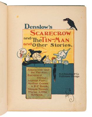 [With:] DENSLOW, W.W. (1856-1915). Denslow's Scarecrow and the Tin-Man and Other Stories. Chicago: M.A. Donohue & Co., 1913. 8vo. (Some toning and offsetting throughout.) Publisher's cloth with full color printed label (rubbing, some splitting and bumping at spine ends, soiling); folding case. Final leaf pasted to terminal gathering as called for in Hanff & Greene.