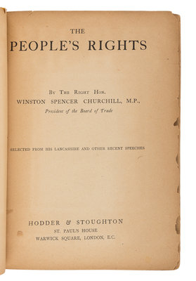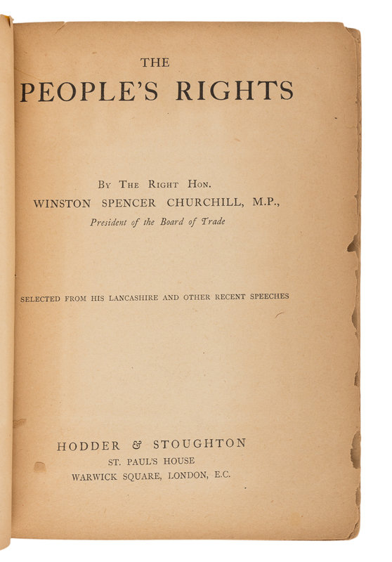 CHURCHILL, Winston Leonard Spencer, Sir (1874-1965). The People’s Rights: Selected from His Lancashire and Other Recent Speeches. London: Hodder & Stoughton, 1910.
