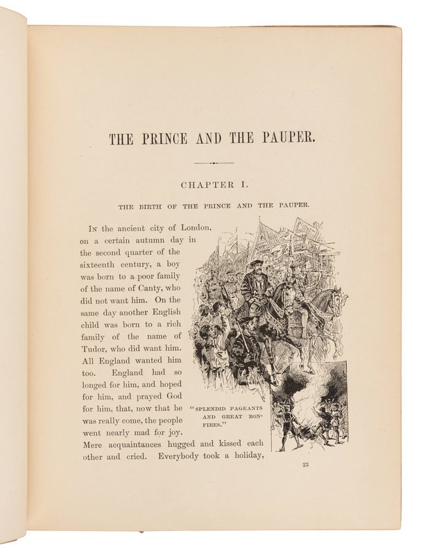 CLEMENS, Samuel Langhorne (“Mark Twain”) (1835-1910). The Prince and the Pauper a Tale for Young People of All Ages. Boston: James R. Osgood & Company, 1882.