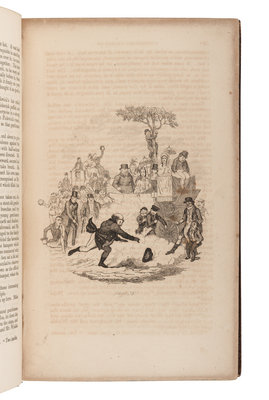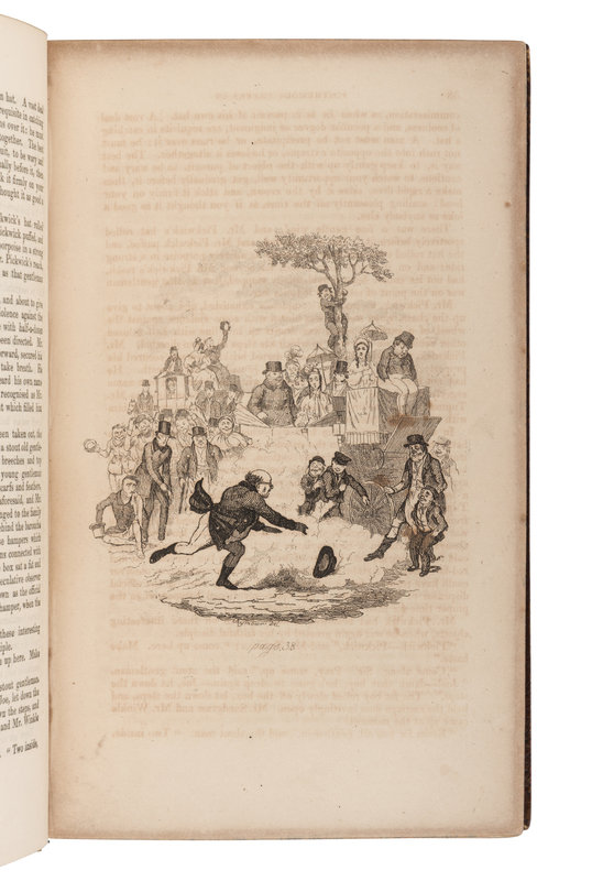 FIRST EDITION, BOUND FROM THE ORIGINAL PARTS, third issue with signature E on p.25 and pagination on p.26. Most plates are in Hatton & Cleaver's second plate or first state of the second Seymour plate. With "A Tribute to Genius" stamp for Charles Dickens tipped to front flyleaf. Eckel (1972), pp. [17-59]; Hatton & Cleaver, pp. 3-88; Yale/Gimbel A15.
