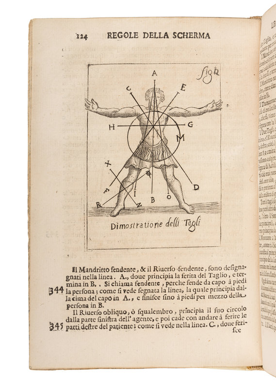 MARCELLI, Francesco Antonio. Regole della scherma insegnate de Lelio, e Titta Marcelli scritte da Francesco Antonio Marcelli figlio, enipote e maestro di scherma in Roma. Rome: Dom. Ant. Ercole, 1686.