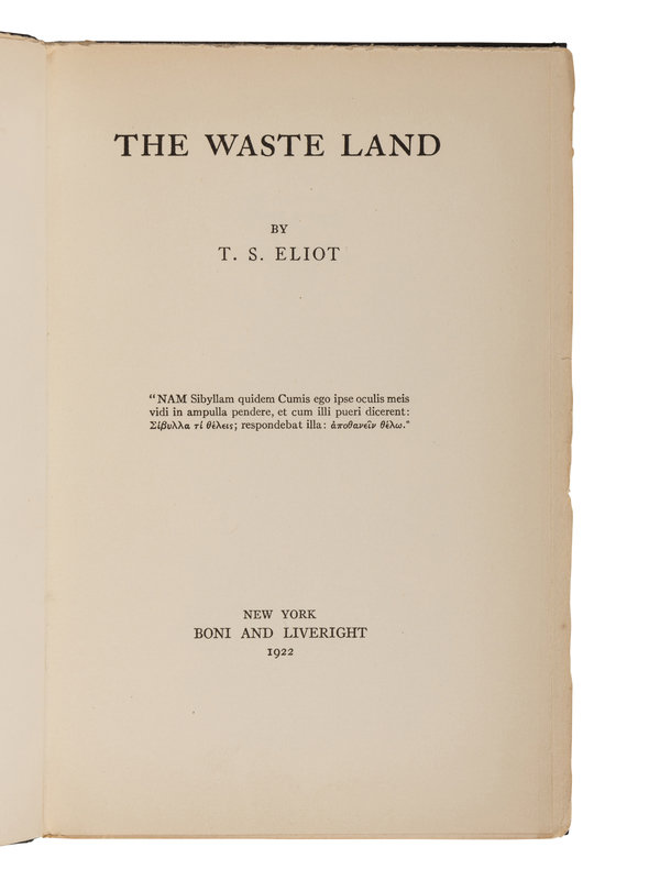 ELIOT, T. S. (1888-1965). The Waste Land. New York: Boni and Liveright, 1922.