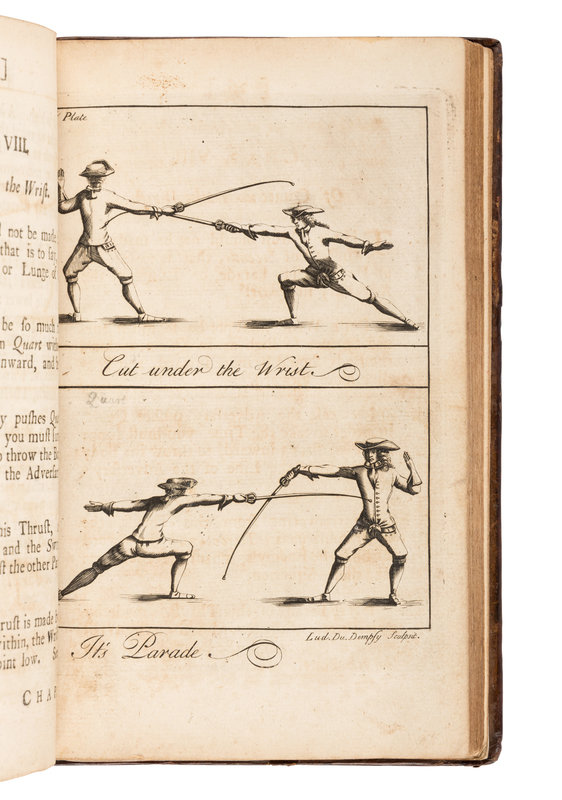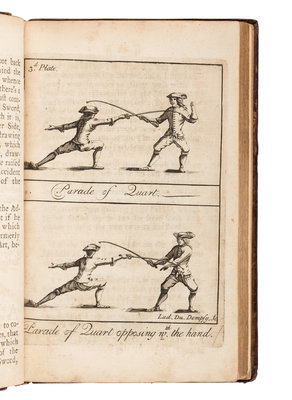 FIRST EDITION IN ENGLISH of l'Abbat's work, translated by Andrew Mahon, advocating for the French School of fencing and dedicated to George Sackville by the translator. Not in Pardoel; Thimms p.1.