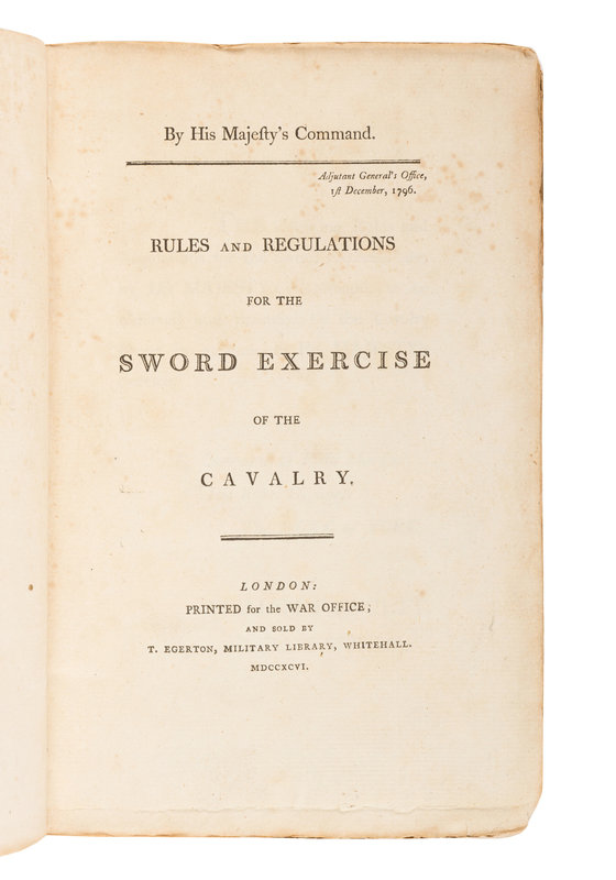 [LE MARCHANT, John Gaspard]. By His Majesty's Command. Rules and Regulations for the Sword Exercise of the Cavalry. London: War Office, printed and sold by T. Egerton, Military Library, Whitehall, 1796.