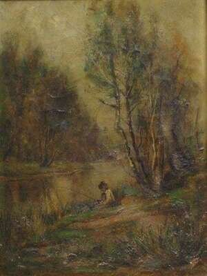 FREDERICK LEO HUNTER (AMERICAN 1858-1943) FISHING IN A CREEK
