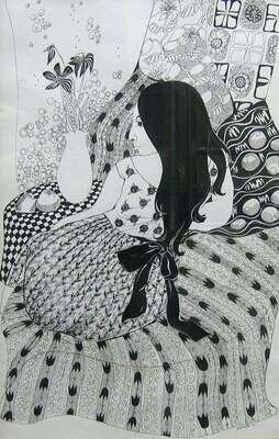 * MADLI (20TH CENTURY) GIRL ON A PATTERNED DRAPE