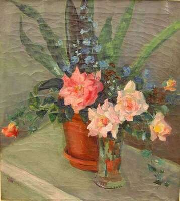 HANNAH CUTLER GROVES (AMERICAN 1868-1952) STILL LIFE WITH PINK ROSES