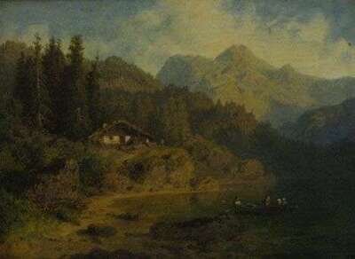 AUGUST PIEPENHAGEN (GERMAN 1791-1868) LANDSCAPE WITH FIGURES IN A PUNT