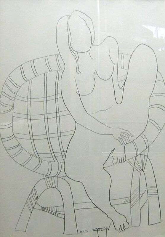 MODERN SCHOOL (LATE 20TH CENTURY) NUDE ON A BASKET CHAIR