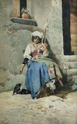 LEOPOLDO MARIOTTI (ITALIAN 1848-1916) SPINNING YARN