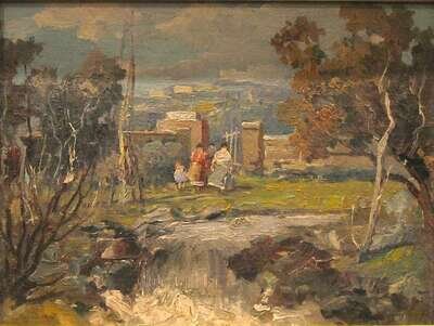 RUSSIAN SCHOOL (EARLY 20TH CENTURY) FIGURES IN A LANDSCAPE