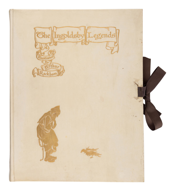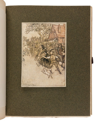 4to. 24 color-printed plates by Rackham tipped to mounts with numerous additional illustrations. (Light spotting to rear endpaper, half title and title pages, light marginal toning throughout.) Original vellum gilt, top edge gilt, others uncut (slight soiling), brown silk ties; custom white morocco-tipped slipcase.