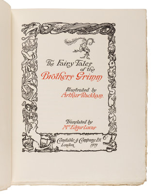 [RACKHAM, Arthur (1867-1939), illustrator]. [GRIMM BROTHERS]. The Fairy Tales of the Brothers Grimm. Mrs. Edgar Lucas, translator. London: Constable & Company Ltd., 1909.