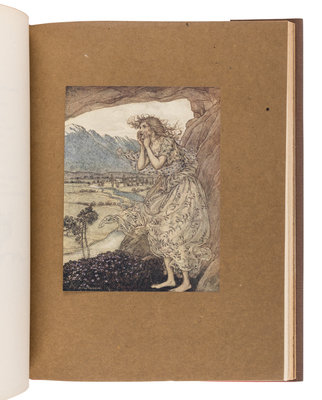 4to. 24 color-printed plates by Rackham tipped to mounts with numerous in-text illustrations. (Light marginal toning, offsetting to introductory and concluding pages not affecting text.) Contemporary half polished calf gilt, red and black morocco lettering-pieces, top edge gilt, others uncut, stamp-signed by Bayntun (light rubbing); custom white morocco-tipped chemise and slipcase.