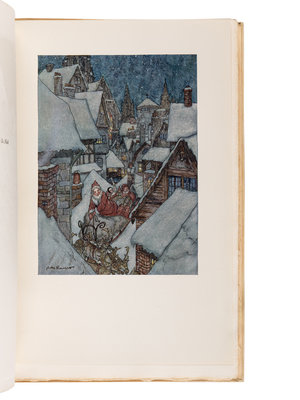LIMITED EDITION, ENGLISH ISSUE, number 81 of 275 copies for sale in England of a total edition of 550 copies, SIGNED BY RACKHAM, IN THE RARE ORIGINAL SLIPCASE. Moore's descriptions in this Yuletide poem shifted American views of Santa Claus, turning away from describing the previous lanky disciplinarian and towards a rosy-cheeked cheerful character; Rackham's illustrations for this edition further emphasized Santa's good-natured gift-giving to children. Latimore & Haskell, p. 66; Riall, p. 174.