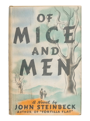 FIRST EDITION, FIRST ISSUE, including the line "...and only moved because the heavy hands were pendula." on page 9, as well as the bullet between the 8s on page 88, top edge stained blue, IN THE FIRST ISSUE DUST JACKET with $2.00 price. Steinbeck's novella portraying the lives of George Milton and Lennie Small, migrant farm workers in California during the Great Depression, was based on his own experiences working alongside migrant farm workers in the 1910s. Goldstone & Payne A7a.