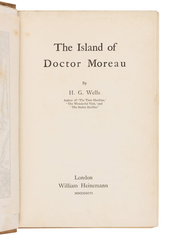 WELLS, H.G. (1866-1946). The Island of Doctor Moreau. London: William Heinemann, 1896.