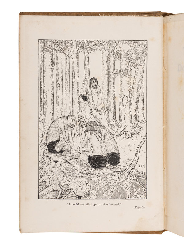 FIRST EDITION, FIRST ISSUE with 33 pp. advertisements at rear and in Currey's (A) binding with monogram on rear board. The Island of Dr. Moreau has been adapted into film numerous times, perhaps most famously in 1932 as Island of Lost Souls starring Bela Lugosi as the Sayer of the Law. Currey p. 520; Hammond B3; Wells 8.