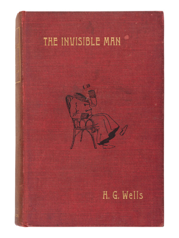 FIRST EDITION, FIRST STATE with first page numbered "2" and title page printed in orange and black. Publisher's ad leaf at rear. The Invisible Man was serialized in Pearson's Weekly in 1897, and has been the basis for numerous film, radio, and television adaptations. Currey 520; Hammond B4; Wells 11.