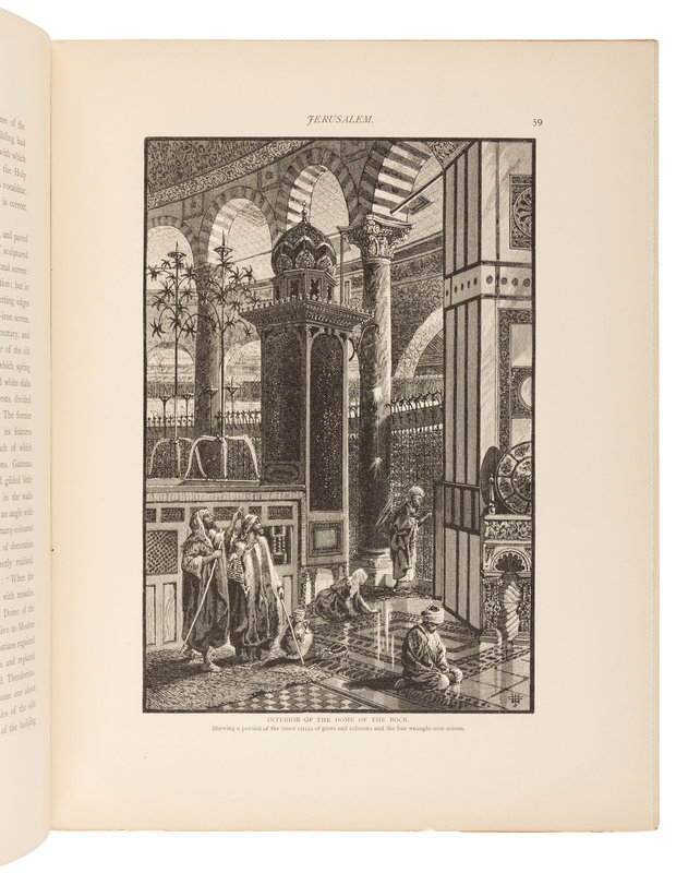 FIRST EDITION, RARE IN THE ORIGINAL PARTS. Beginning in 1864 Charles William Wilson began the first official survey of Jerusalem while working for the wealthy philanthropist Baroness Angela Burdett-Coutts, who wished to identify a better source of drinking water for the citizens of the city. These volumes contain the first printed views of the interior of the Dome of the Rock, a Muslim holy site at which the artists were famously protected by armed guards while they sketched its interiors, as Christians were traditionally barred from access (Ackerman, 258). Blackmer 1817.