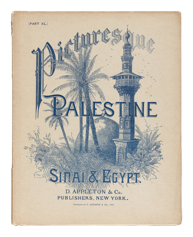 [With:] WILSON. Picturesque Palestine, Sinai and Egypt. New York: D. Appleton and Company, 1880-1883. 2 volumes, 4to. 2 maps, 40 steel engravings, and 574 wood engravings. (Toning to page edges, some offsetting.) Publisher’s deluxe brown morocco decorated in blind, edges gilt (light rubbing along extremities). FIRST EDITION IN BOOK FORM.