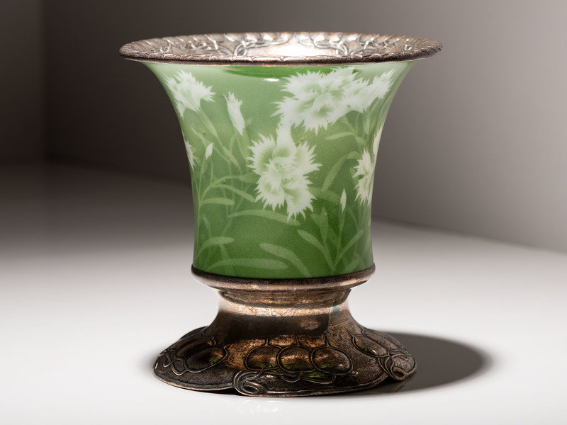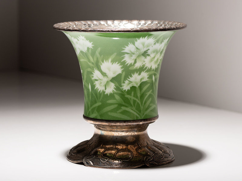 Arts and Crafts Silver Mounted Japanese Porcelain Vase