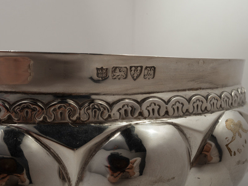 H 7 1/4 x Dia 9 inches; silver weight 61 ozt 8 dwt.