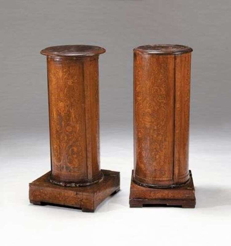 Near pair of Italian walnut & marquetry pedestals 19th century