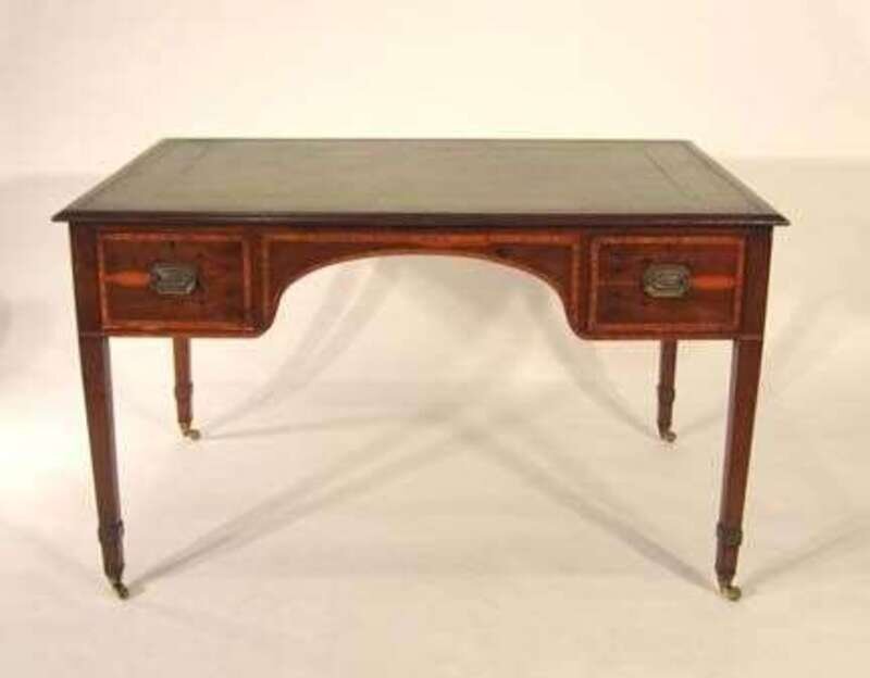 George III style yew wood & satinwood banded kneehole desk early 20th century
