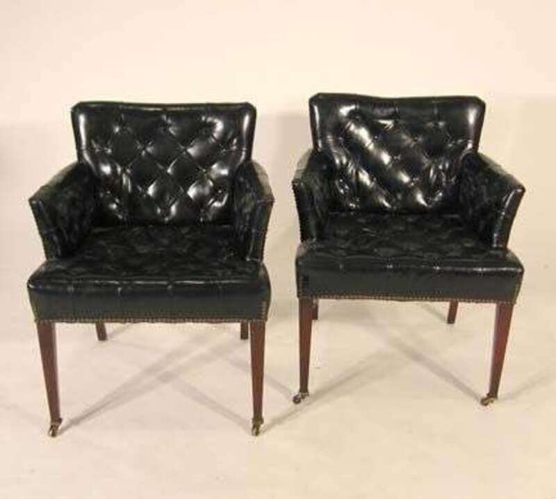 Set of three George III style mahogany & leather club chairs circa 1900
