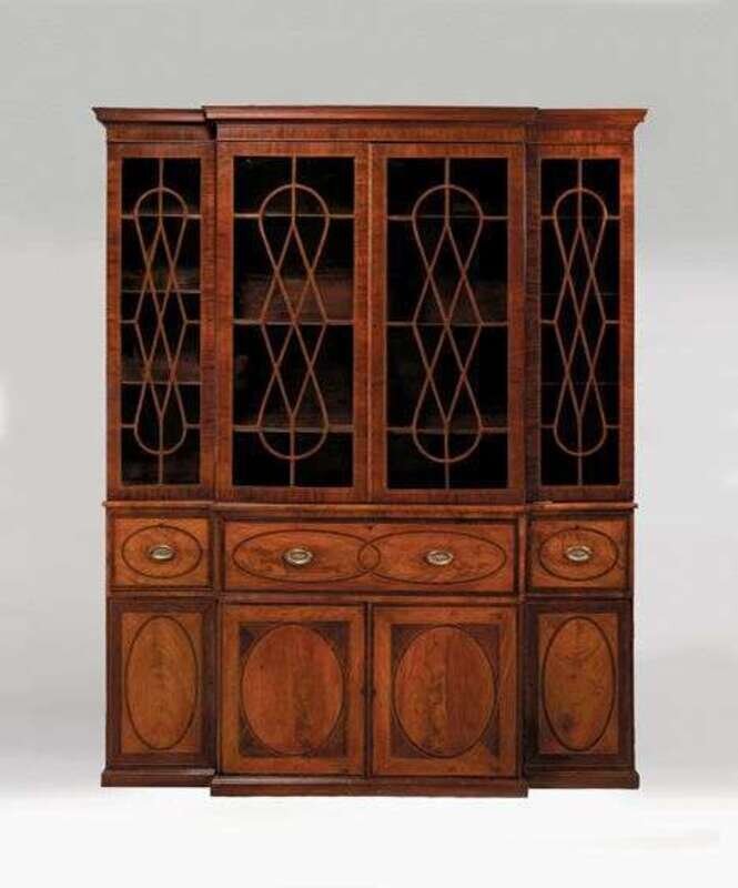 George III mahogany and inlaid secretaire breakfront bookcase 18th century