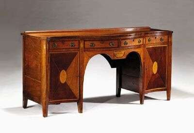 George III mahogany satinwood & marquetry serpentine sideboard circa 1790