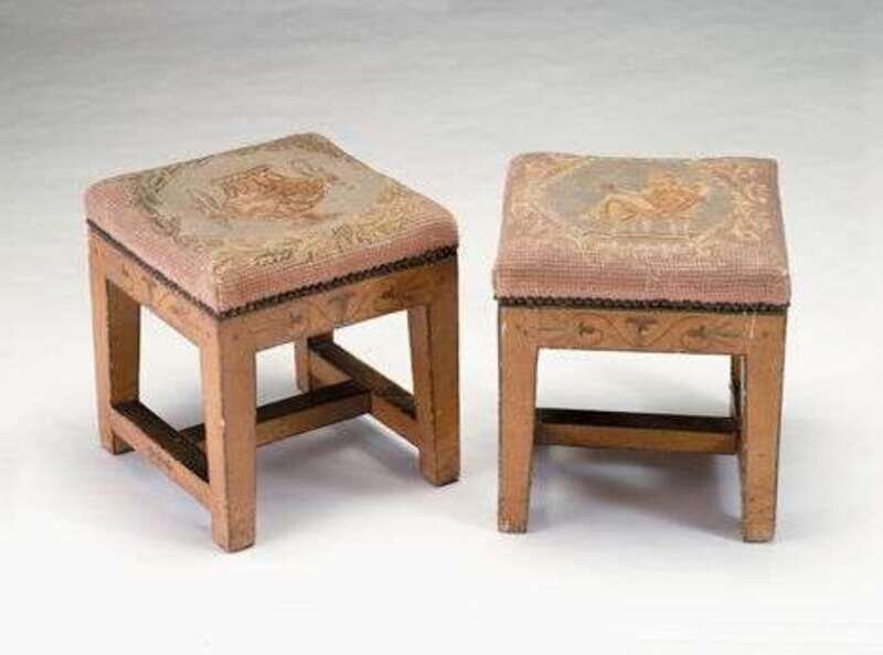 Pair of French Neo-classical paint decorated foot stools circa 1810