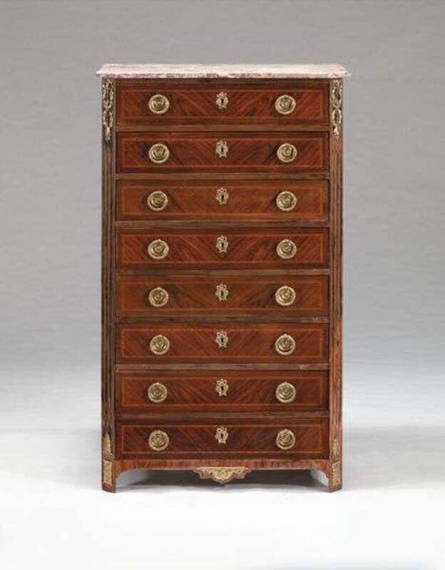 Louis XVI style rosewood & kingwood banded semainier late 19th / early 20th Century