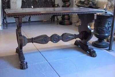 Renaissance style mahogany trestle table late 19th / early 20th century