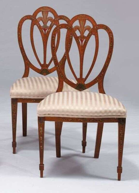 Pair of satinwood shield back painted side chairs early 20th century
