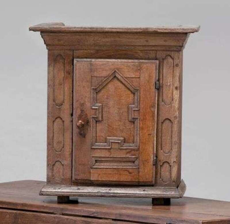 Charles II oak mural cupboard 17th century with restorations