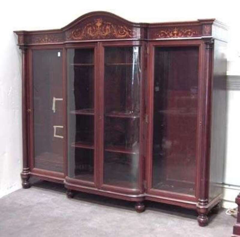 Sheraton Revival mahogany & marquetry dwarf display cabinet circa 1900