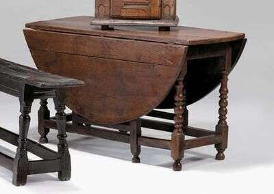 Lacks drawer, the oval top raised on baluster turned legs united by a peripheral stretcher.