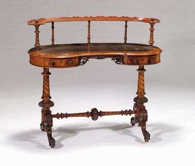 Victorian burl walnut kidney shaped writing desk circa 1880