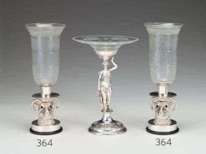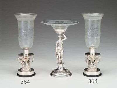 Pair of silver plated and cut glass hurricane lamps glass 19th century