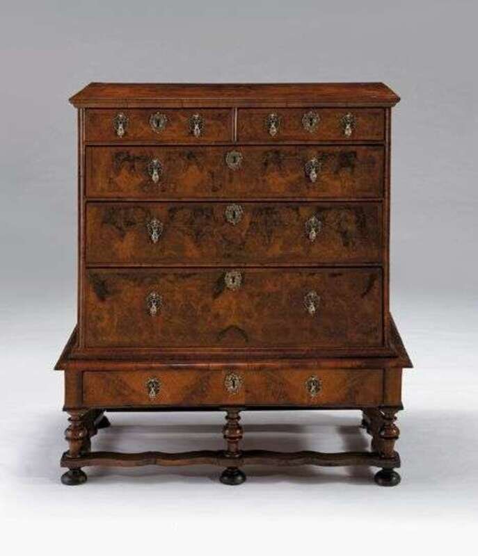 William & Mary walnut & featherbanded chest on stand circa 1690