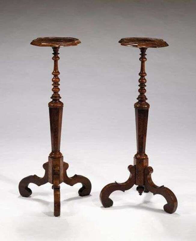 Pair of William & Mary style burl walnut torcheres circa 1900