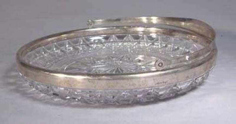 The star and hobnail cut bowl with a plain silver rim and swing handle. Diam: 10 1/2 in.