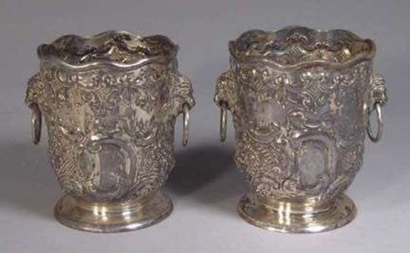 Pair of Edwardian sterling silver vases goldsmiths & silversmiths co. london 1905