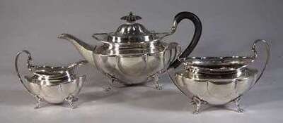 Edwardian three piece sterling silver tea service elkington & co, birmingham 1906